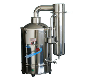 蒸餾水器是用電加熱自來水制取純水。化驗室等部門使用蒸餾水器一般都是采用優質的不銹鋼材料,經過特殊處理后加工而成。這樣不僅充分保證了蒸餾水的質量,而且也大大提高了使用壽命。